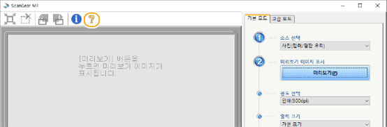 [기본 모드]를 선택하면 표시된 1 ~ 3의 순서로 스캔할 수 있습니다. 자세한 데이터 크기와 이미지 품질을 설정하려면 [고급 모드]를 선택합니다. ScanGear MF 화면에 나타나는 항목에 대한 설명을 보려면