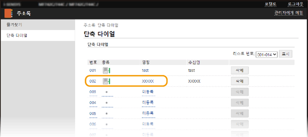 액세스 제한을 설정하려는 대상의 [번호], [종류] 또는 [명칭]을 클릭합니다.