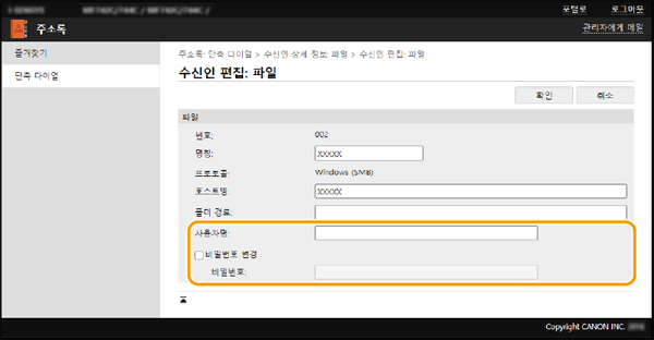 공유 폴더에 대한 액세스 제한 설정(리모트 UI)