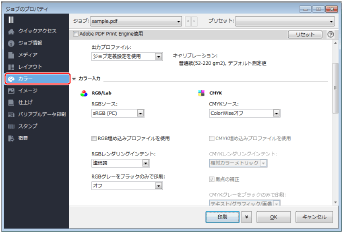 以下の操作は必ず行ってください。ジョブのプロパティが適切に設定されていないと、測色用チャートが正しく出力されません。
