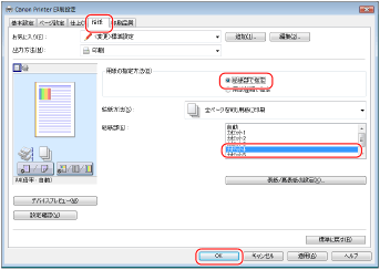 <給紙>タブで下記のように設定し、[OK]をクリックする