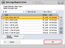 ), and change the settings for it. After specifying the settings for the custom type of paper you made, press
