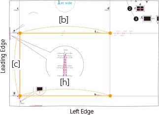 If the test page is so small that the distances b and h cannot be measured, add <c'>, <b'> and <h'> as shown in the illustration on the right. Enter these distances in [c], [b] and [h] respectively.