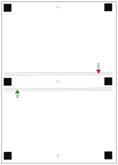 Use the marks for each paper size when checking for misalignment of images. For example, if the test page is A3, use the