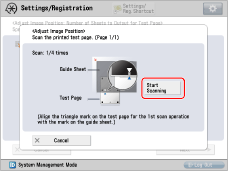 on the test page for the fourth scan operation with the mark on the guide sheet → press [Start Scanning].