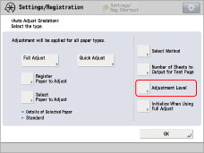 Select [Standard] (for the recommended paper) or the paper for calibration that you loaded in step 1 for [Select Paper to Adjust].