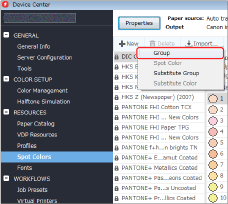 Command WorkStation > [Help] > [Managing color] > [Spot colors] > [Create, rename, or delete a spot color or color group]