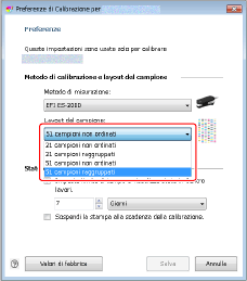 Selezionare la pagina di calibrazione che si desidera usare da [Layout del campione].