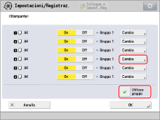 Selezionare [Utilizzo gruppo] → premere [Cambia] per la fonte alimentazione carta
