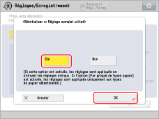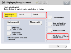 Sélectionner le papier à corriger, puis appuyer sur [Réinitialiser si Réglage complet utilisé].