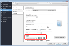 Sélectionner un format papier sous <Format papier> qui est deux fois plus grand que le format de la brochure à créer. Par exemple, si l'on sélectionne un format papier A4 sous <Format papier>, le format de la brochure terminée est A5.