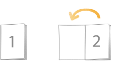 La machine imprime la première page à l'extérieur de la couverture de dessus, puis les pages suivantes dans l'ordre. Elle imprime aussi à l'intérieur de la couverture de dessus.
