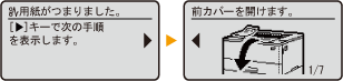 紙がつまると、画面に<用紙がつまりました。>と表示され、