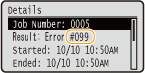 If an error occurs such as when printing is not successful or when you cannot receive an I-Fax, the corresponding error code is displayed in the job log screen as a three-digit number.