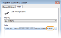 Khi [USB Printing Support] được hiển thị