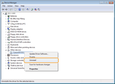 Khi [USB Printing Support] và các mục liên quan khác không được hiển thị trong Trình Quản Lý Thiết Bị