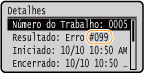 Se ocorrer um erro, como a impressão não ser bem-sucedida, ou se não conseguir enviar ou receber um I-Fax, o código de erro correspondente é apresentado num relatório ou no ecrã de registos de trabalhos sob a forma de um número de três dígitos.
