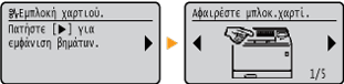 Αν προκύψει εμπλοκή χαρτιού, εμφανίζεται το μήνυμα <Εμπλοκή χαρτιού.> στην οθόνη. Πατήστε το πλήκτρο