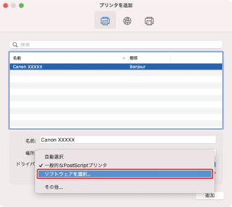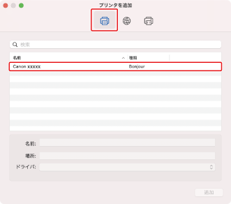 [種類]に「Bonjour」と表示されている本機を選択してください。