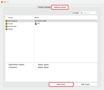 To edit an already-registered card, select the card, and then click [Edit Card].