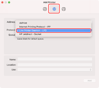 IP] in the toolbar, and then select [Line Printer Daemon – LPD] in [Protocol].
