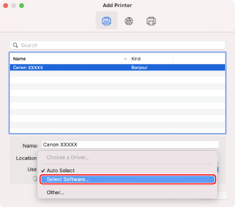 Select [Select Software] in [Use].