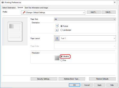 Display the [Special] sheet of the print settings screen.