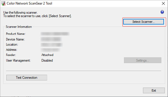 When using Color Network ScanGear 2 for the first time, select the device to use in the Color Network ScanGear 2 Tool.