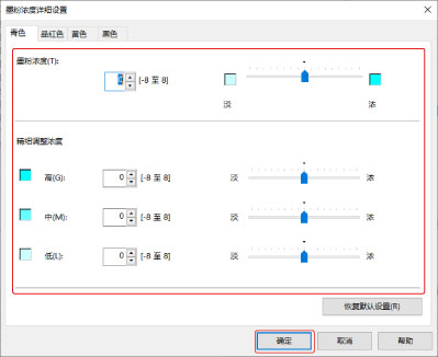 在[精细调整浓度]中,可以针对每种浓度级别调整墨粉浓度。