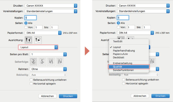 Wählen Sie [Qualität] aus dem Popup-Menü.