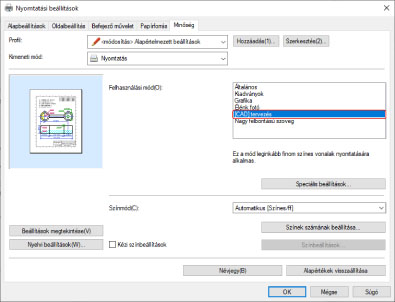 Előfordulhat, hogy a [Felhasználási mód] beállítása CAD-nyomtatáshoz nem alkalmas.