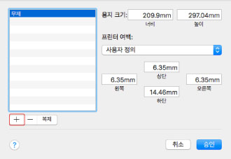 [용지 크기]와 [프린터 여백]을 구성합니다.