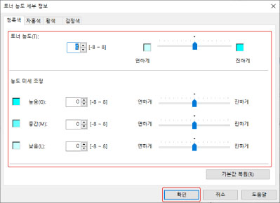 [농도 미세 조정]에서 각 농도의 토너 농도를 조정할 수 있습니다.