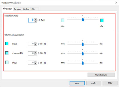 ใน [ปรับความเข้มแบบละเอียด] คุณสามารถปรับความเข้มของหมึกสำหรับระดับความเข้มแต่ละระดับได้