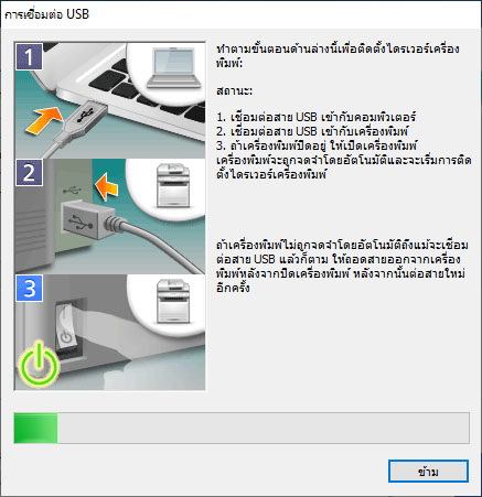 สำหรับรายละเอียดเกี่ยวกับวิธีการติดตั้งไดรเวอร์ขณะเชื่อมต่ออุปกรณ์ทาง USB ให้ดูคู่มือของไดรเวอร์เครื่องพิมพ์