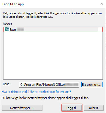 (2) On the file selection screen, select the application to allow communication via the firewall, and click [Åpne].