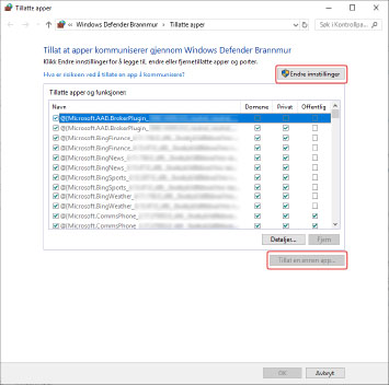 Click [Endre innstillinger] → click [Tillat en annen app].