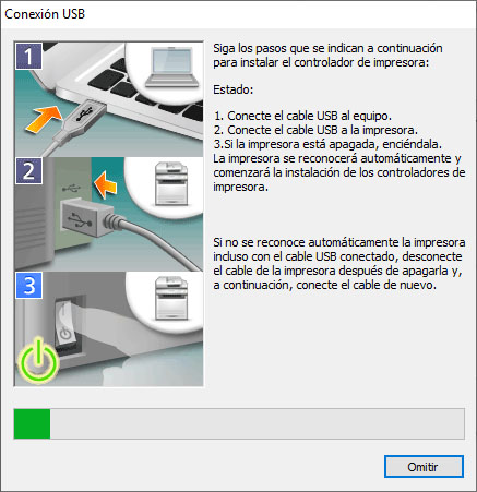 Si desea obtener más información sobre el método para instalar el controlador con el dispositivo conectado mediante USB, consulte el manual del controlador de impresora.