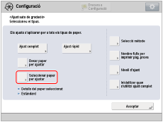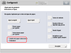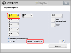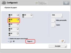 → [Preferències] → [Opcions de paper] → [Opcions de paper] per establir el tipus de paper.