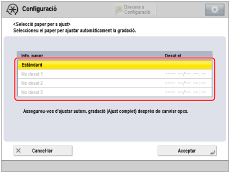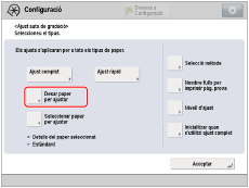 Seleccioneu el paper que heu registrat al pas 3 per a l'opció [Seleccionar paper per ajustar].