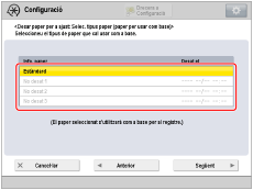 Seleccioneu el calaix de paper en què heu carregat els següents papers recomanats com a origen del paper i que contenen el paper que voleu utilitzar com a base.