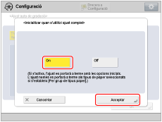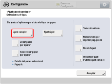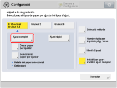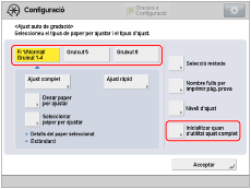 Seleccioneu el tipus de paper que vulgueu corregir i, després, premeu [Inicialitzar quan s'utilitzi ajust complet].