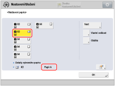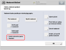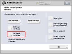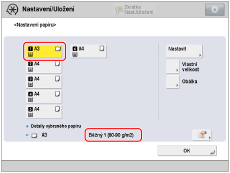 → [Možnosti] → [Nastavení papíru] → [Nastavení papíru] a nastavte typ papíru.