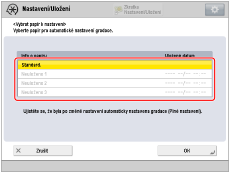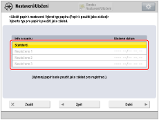Vyberte typ papíru uložený v kroku 3 pro [Vybrat papír k nastavení].