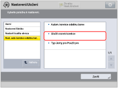 „Nastavení pro kvalitu obrazu a kompletaci (Kalibrace)“ > „Nastavení kvality obrazu“ > „Automatická korekce barevných odstínů“ v dokumentu Uživatelská příručka > viz dílčí sekce „Ukládání vzorku korekce“