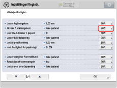 *1: Kontroller den side af det udskrevne papir, der vender op/ned. For den side af papiret, der vender opad, skal du justere indstillingen for "Afl. med forside op (omv.)." For den side af papiret, der vender nedad, skal du justere indstillingen for "Afl. med forside ned (norm.)."