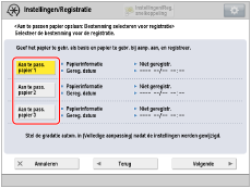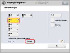 "Instellingen/Registratie" > "Voorkeuren" > "Papierinstellingen" > "Registreren van het formaat en type papier voor een papierbron" in de Gebruikershandleiding