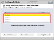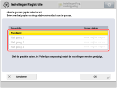 Selecteer het papier dat u in stap 3 voor [Selecteer aan te passen papier] hebt geregistreerd.