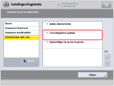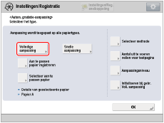 Selecteer het papier dat u wilt corrigeren en druk vervolgens op [Initialiseren bij gebr. Voll. aanpassing].
