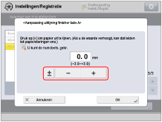Druk op [-] of [+] om de papieruitlijning aan te passen.